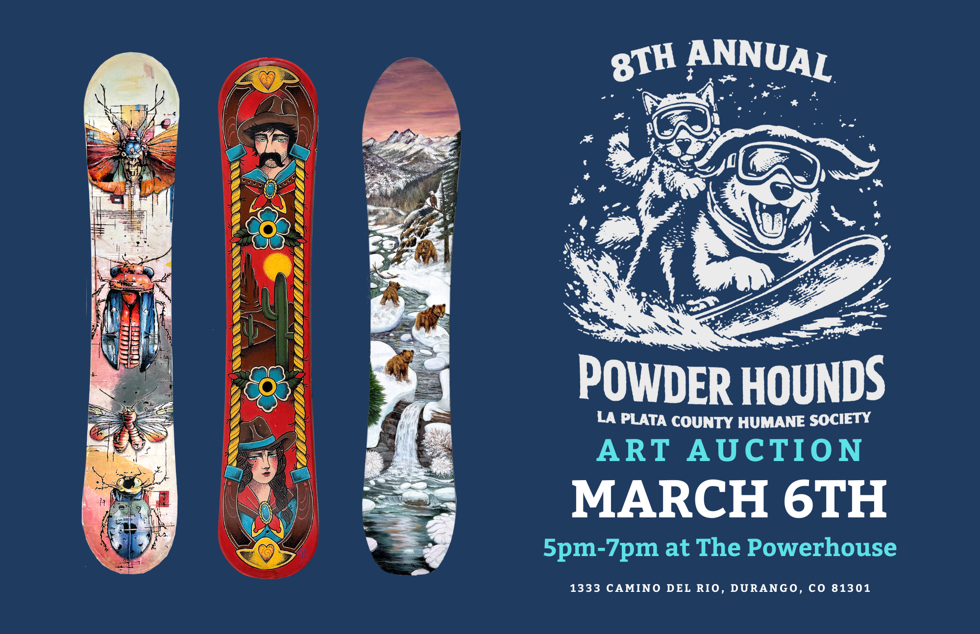 Join us for the 8th Annual Powder Hounds Art Auction, a celebration of creativity, community, and compassion, benefiting the La Plata County Humane Society.